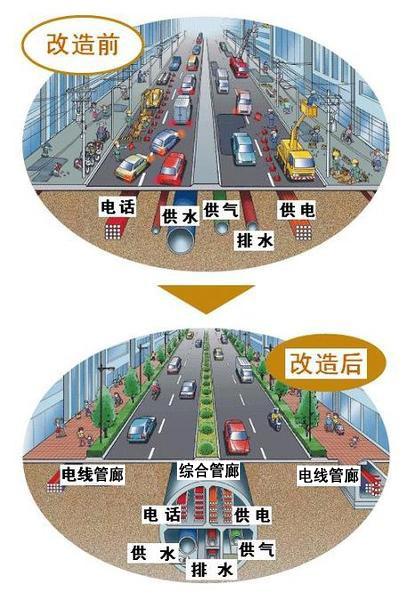 圖1 城市地下管線改造前后對比示意圖