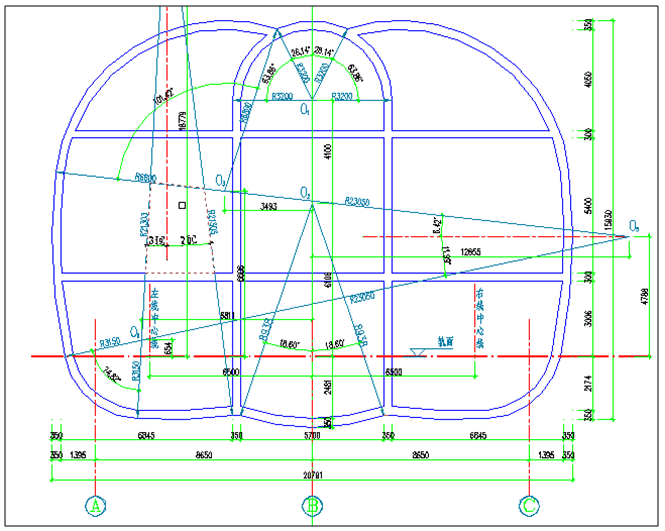 (大連黑石礁站)暗挖車站下穿破碎的強(qiáng)風(fēng)化(碎裂狀)板巖,拱部平緩,開(kāi)挖斷面大,其中B-B斷面為15.93×20.791m,施工跨度大,施工過(guò)程中受力形式轉(zhuǎn)換頻繁,封閉成環(huán)及初支背后回填注漿滯后,易引起圍巖及支護(hù)結(jié)構(gòu)變形和地面沉降風(fēng)險(xiǎn),如圖1。