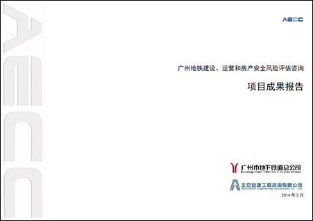 2013年10月,廣州市地下鐵道總公司委托北京安捷工程咨詢有限公司,開展了“廣州地鐵建設(shè)、運(yùn)營(yíng)和房產(chǎn)安全風(fēng)險(xiǎn)評(píng)估咨詢”項(xiàng)目,旨在通過對(duì)建設(shè)事業(yè)總部、運(yùn)營(yíng)事業(yè)總部和房產(chǎn)事業(yè)總部上報(bào)的安全風(fēng)險(xiǎn)排查成果的咨詢服務(wù),審查、確認(rèn)建設(shè)工程重大風(fēng)險(xiǎn)源(Ⅰ、Ⅱ級(jí))、運(yùn)營(yíng)線路中度及以上風(fēng)險(xiǎn)排查的全面性,安全風(fēng)險(xiǎn)分類分級(jí)的合理性,風(fēng)險(xiǎn)防控措施的針對(duì)性和可操作性等,形成安全風(fēng)險(xiǎn)評(píng)估咨詢成果,用以指導(dǎo)廣州市地下鐵道總公司、建設(shè)事業(yè)總部、運(yùn)營(yíng)事業(yè)總部和房產(chǎn)事業(yè)總部等業(yè)務(wù)部門開展風(fēng)險(xiǎn)管控工作。