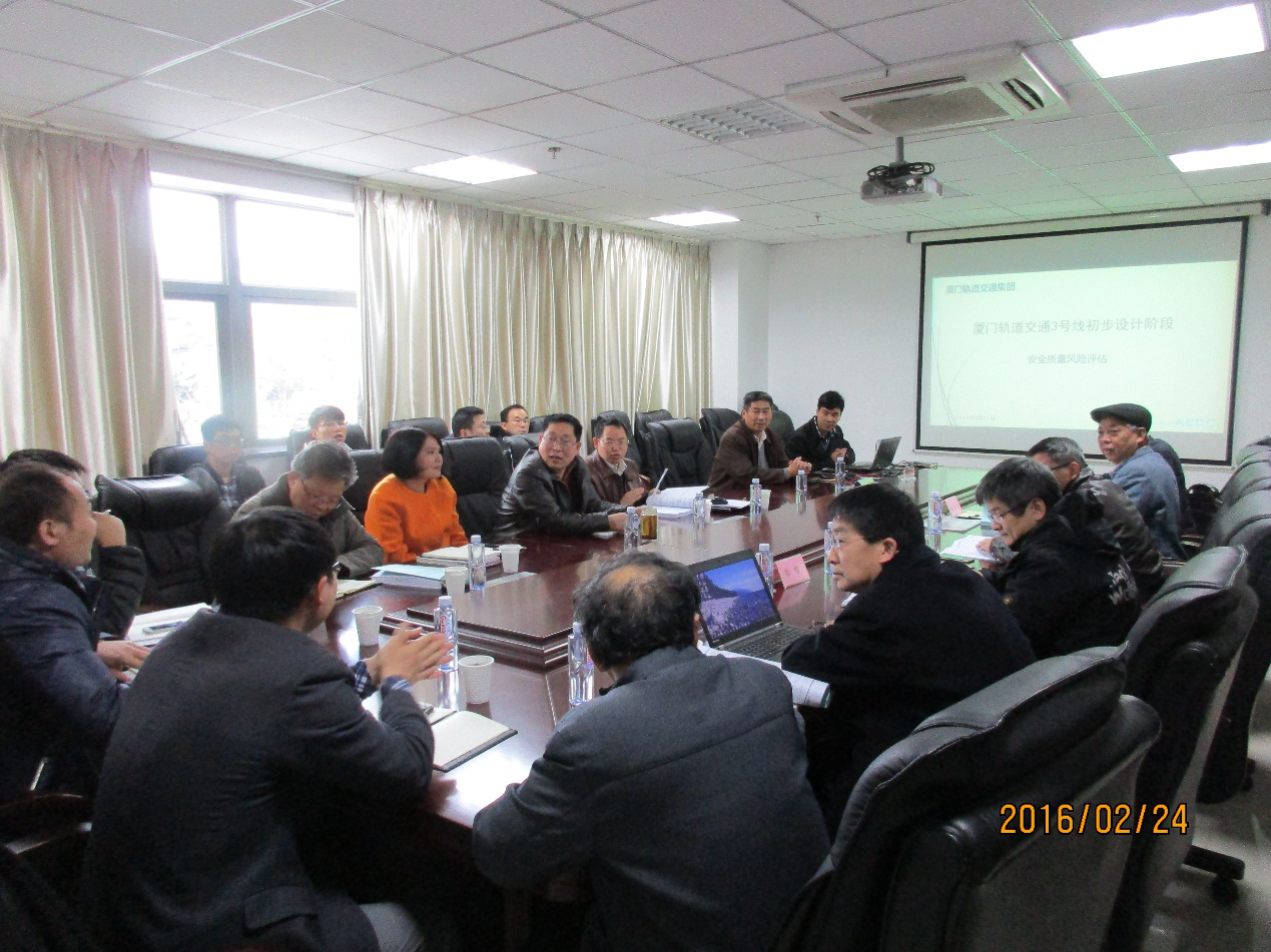 2016年2月24日下午,由廈門市軌道交通有限公司主辦,北京安捷工程咨詢有限公司廈門項(xiàng)目部承辦,在廈門軌道交通有限公司1號(hào)樓203會(huì)議室召開了《廈門市軌道交通3號(hào)線工程設(shè)計(jì)階段安全質(zhì)量風(fēng)險(xiǎn)評(píng)估報(bào)告》評(píng)審會(huì)。