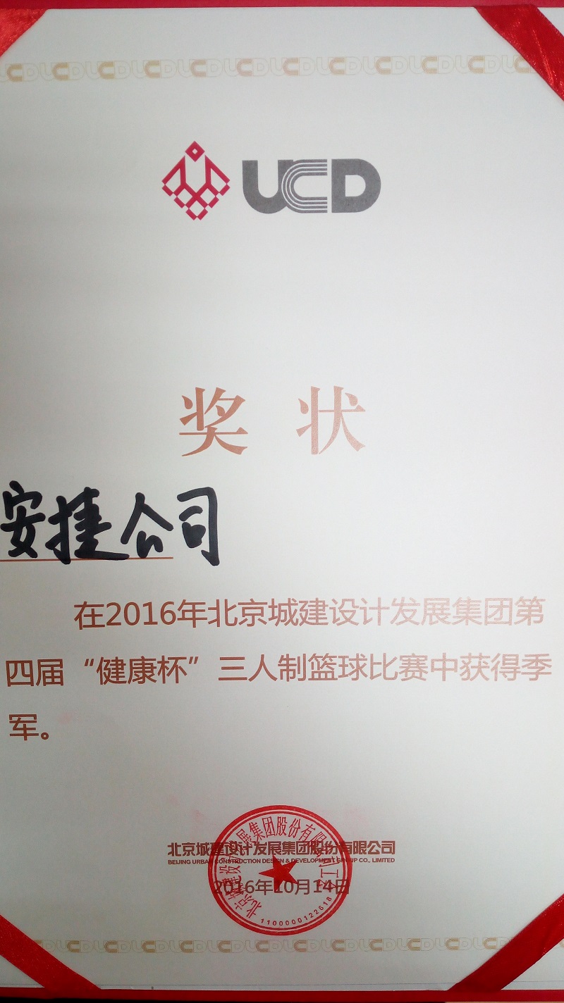 日前,安捷公司參加了城建設(shè)計發(fā)展集團組織的第四屆“健康杯”職工三人制籃球比賽,并喜獲季軍。