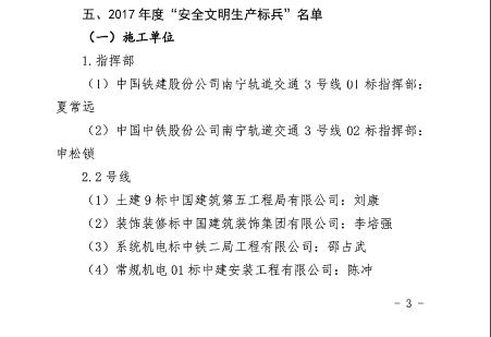在公司各級領(lǐng)導(dǎo)的指導(dǎo)下,在南寧項目部全體員工努力下,南寧項目部堅持以“尊重、陽光、責(zé)任、進取、堅韌”的企業(yè)文化精神對待工作和業(yè)主,在2017年工作中圓滿的完成了公司及業(yè)主單位交代的各項工作,經(jīng)南寧軌道交通集團有限責(zé)任公司評比,我公司榮獲“2017年度安全質(zhì)量管理優(yōu)秀第三方服務(wù)單位”,南寧項目部負責(zé)人侯建剛榮獲“2017年度安全文明生產(chǎn)標兵”。南寧項目部全體員工一定珍惜榮譽,努力工作,繼續(xù)以飽滿熱情迎接新的挑戰(zhàn)!